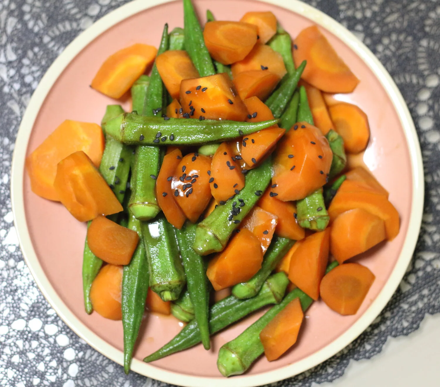 甜甜的日式醬汁煮甘筍秋葵,有益健康,簡單易做